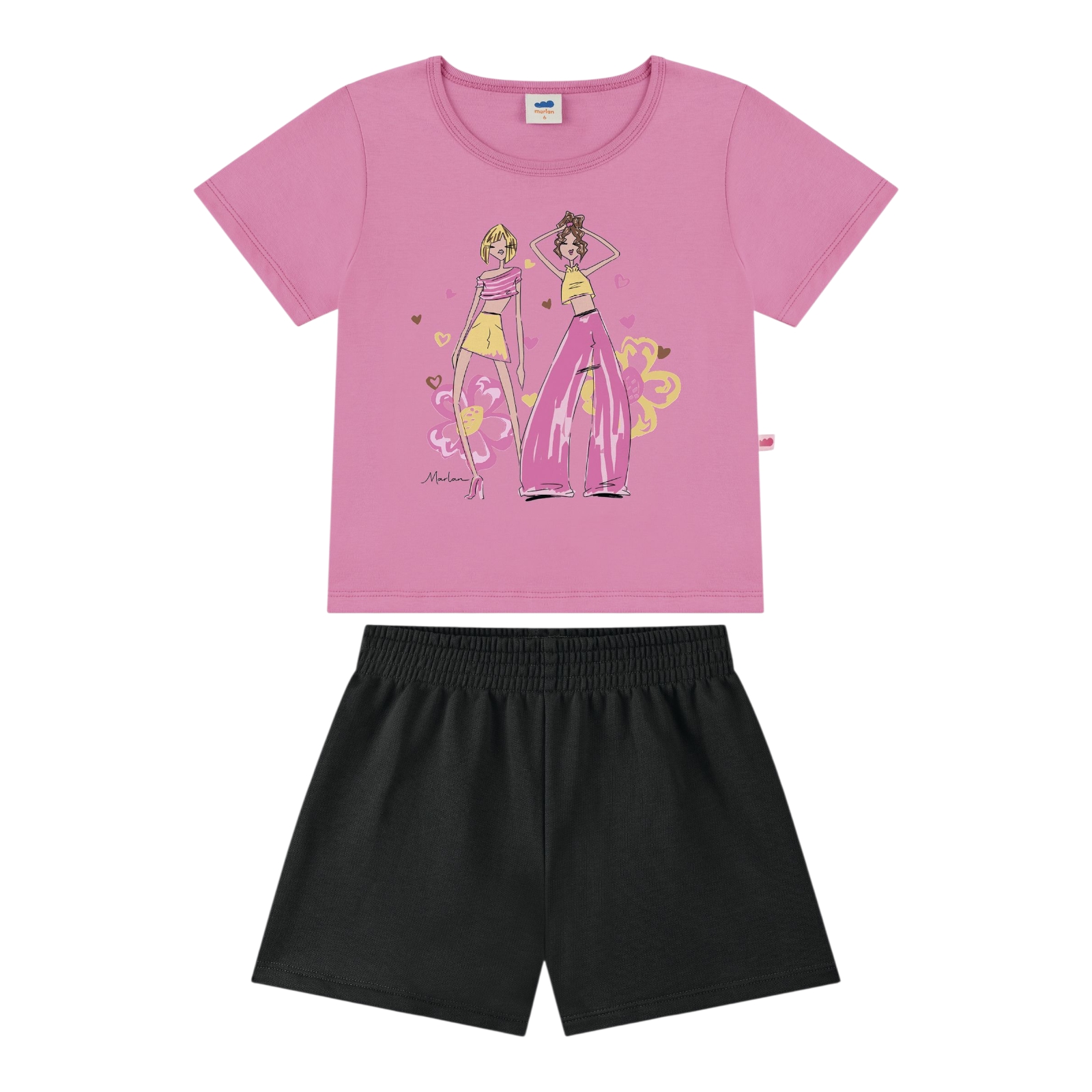 Conjunto feminino camisa na cor rosa estampa dançarinas