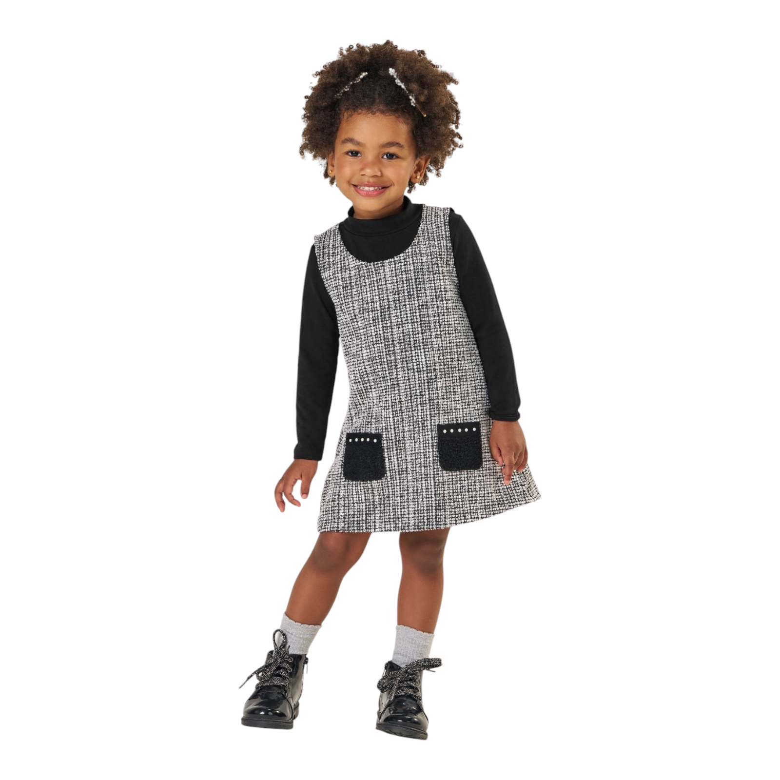 Salopete em tweed e blusa em cotton